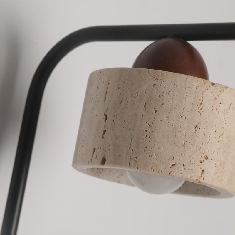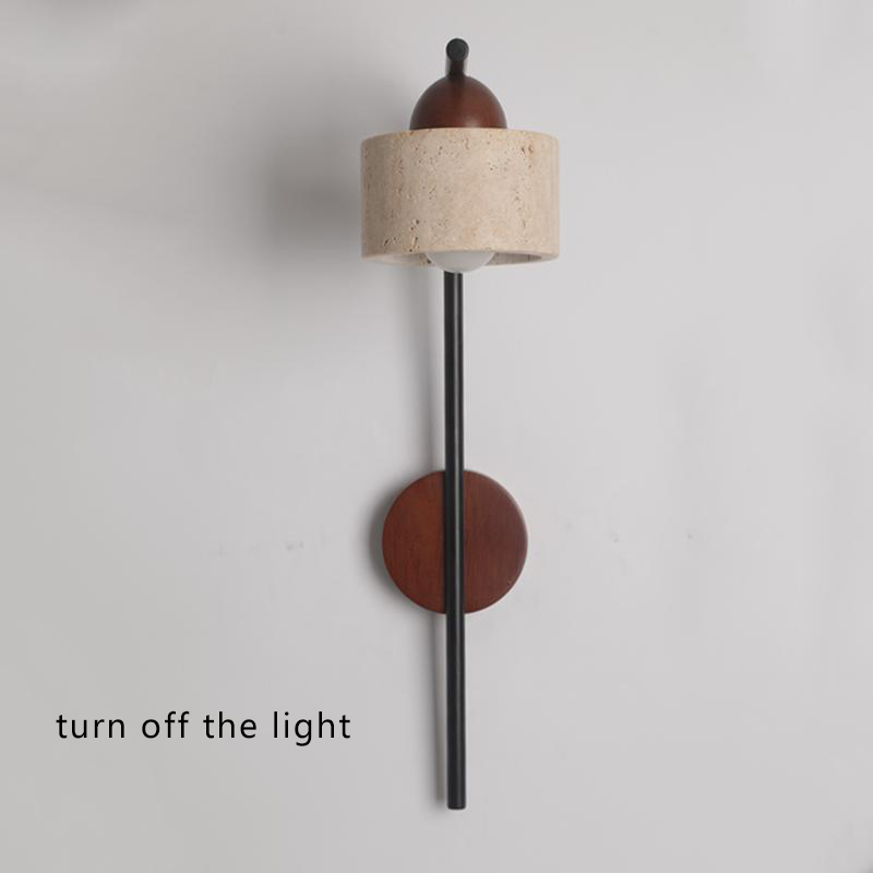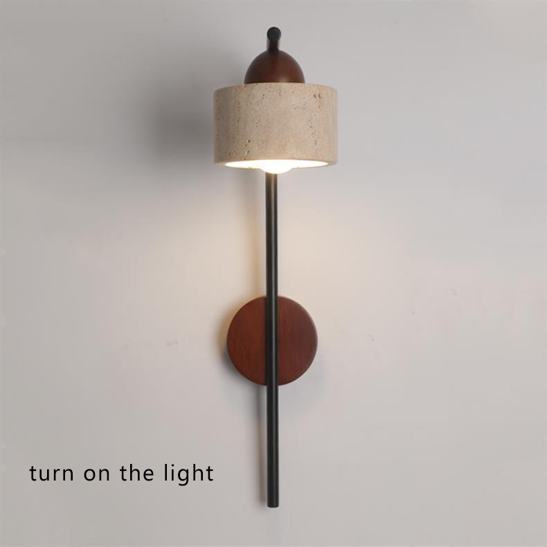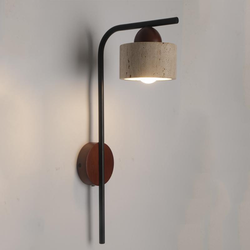 This modern wall lamp blends natural travertine stone, solid wood, and black iron to create a minimalist yet luxurious lighting piece. Its clean vertical structure and geometric balance bring an artistic sense to any interior.
