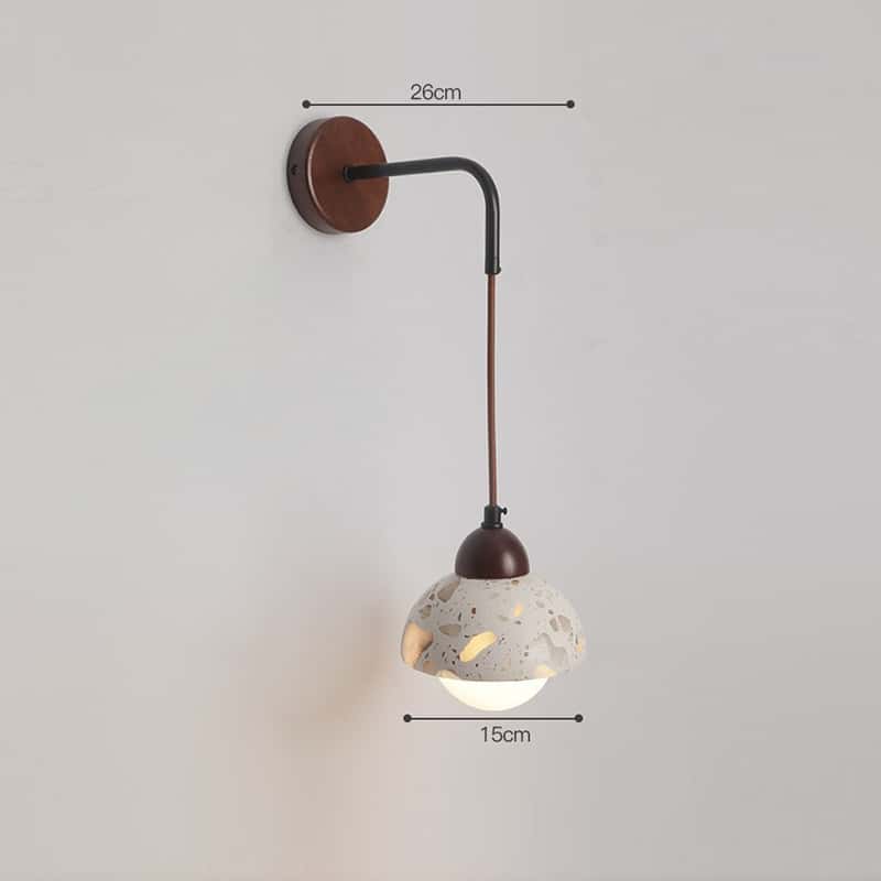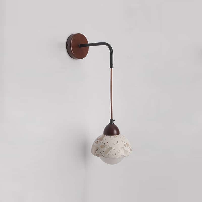 This creative wall-mounted pendant lamp combines translucent terrazzo, solid wood, and iron to deliver a distinctive and elegant look.