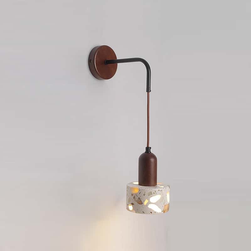 Nordic Terrazzo Cylinder Hanging Wall Lamp Modern Decorative Wall Pendant Light with Wood and Iron