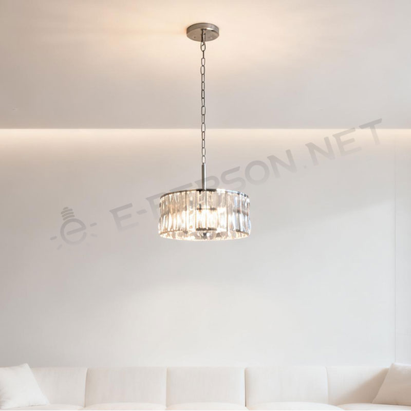 This modern glass pendant light features a beautifully textured glass shade paired with a sleek silver metal frame and adjustable chain suspension.The layered glass design creates a refined crystal-like lighting effect, delivering soft and elegant illumination for modern interiors.- Suitable place : Interior House