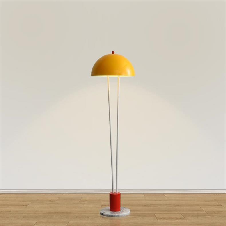 Add a pop of color and style to your space with this Postmodern Dome Floor Lamp, featuring a bold yellow half-sphere shade, white pole supports, and a striking red-and-marble base. It’s a perfect lighting solution for homes, creative studios, or boutiques that want a balance of function and flair.- Suitable place : Interior House