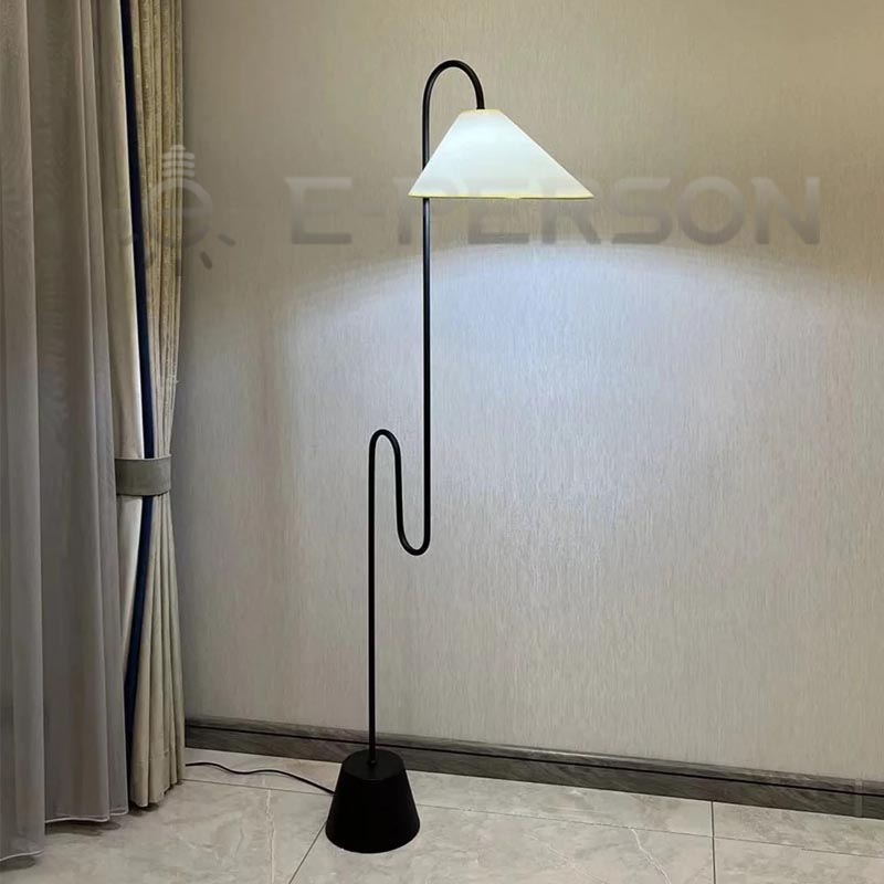 Its black powder-coated frame flows in a distinctive S-curve, guiding the eye up to the white fabric cone lampshade, which emits a soft, warm glow perfect for reading, ambiance, or accent lighting.- Suitable place : Interior House