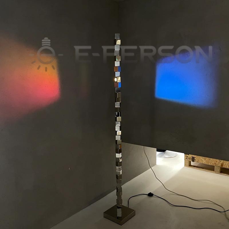 Turn lighting into art with this Geometric Stack Floor Lamp, a bold piece that doubles as a modern sculpture. The lamp features a vertical column of interlocking chrome cubes, offering a dynamic visual rhythm that shifts with light and perspective.- Suitable place : Interior House
