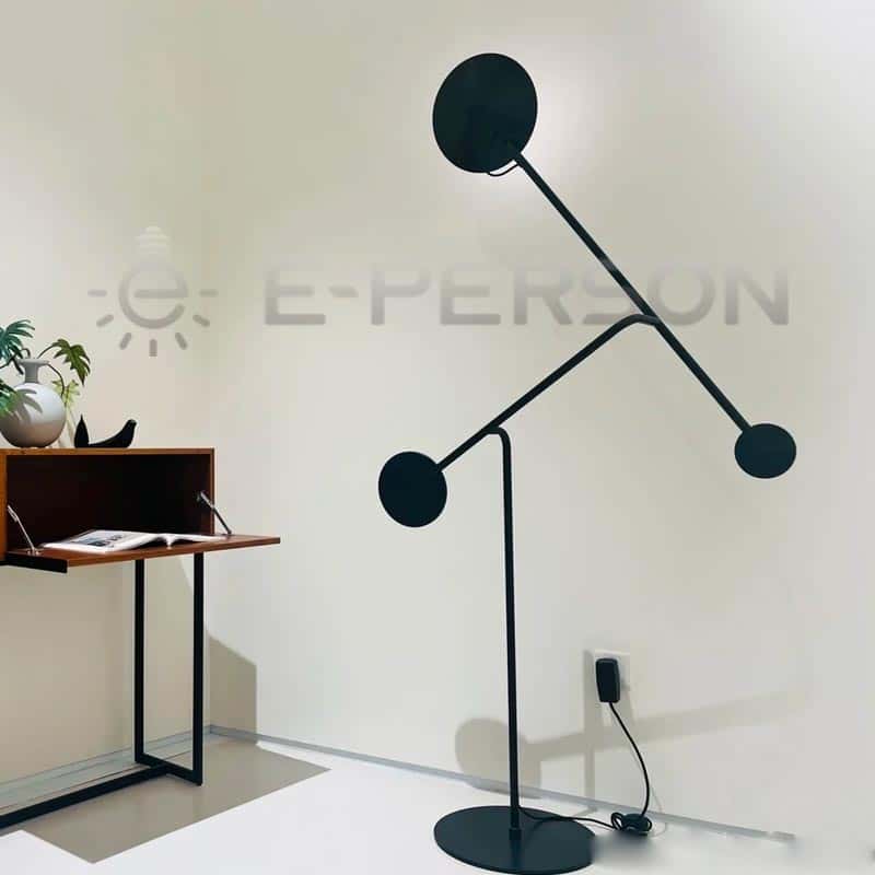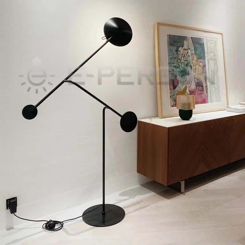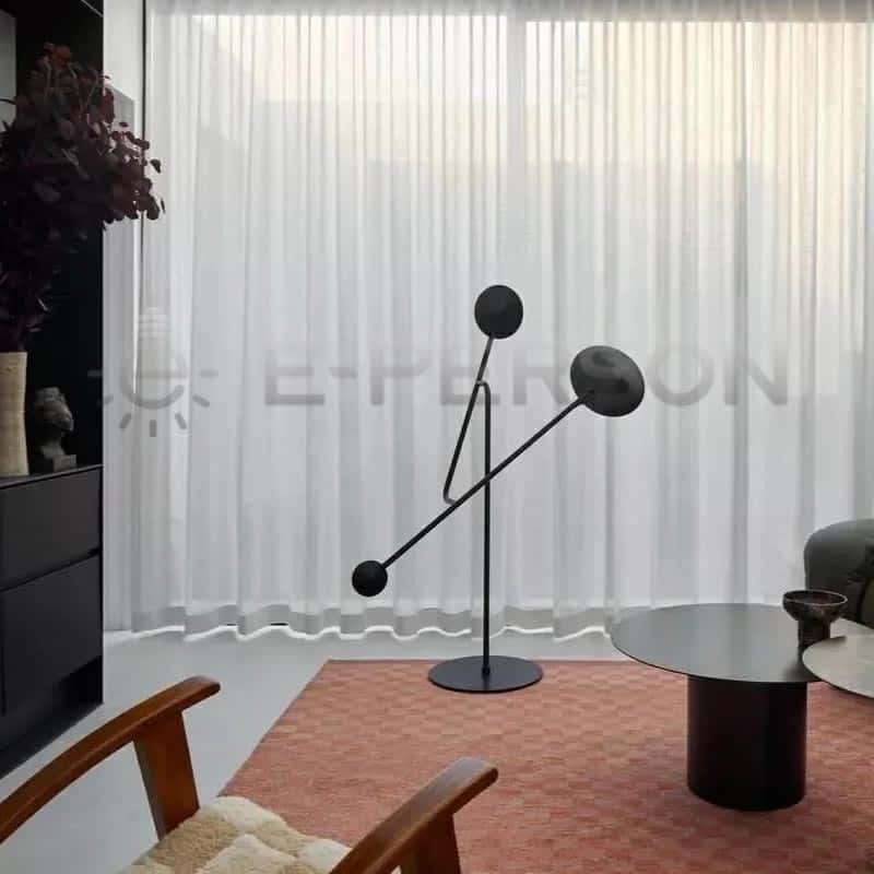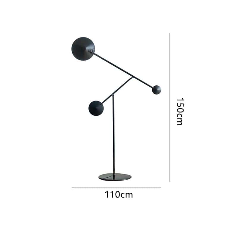 Add a bold statement to your interior with this uniquely designed geometric double-arm floor lamp. Inspired by modern sculpture and minimalist architecture, this floor lamp features two spherical light heads suspended on slim iron arms in perfect balance. The all-black matte finish enhances its architectural aesthetic, making it a centerpiece in contemporary living spaces.