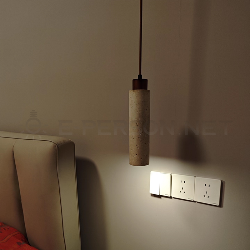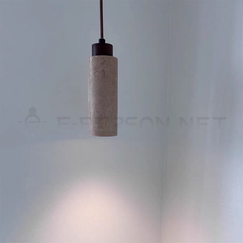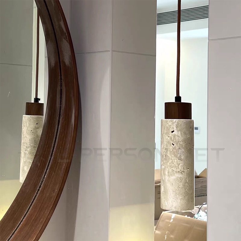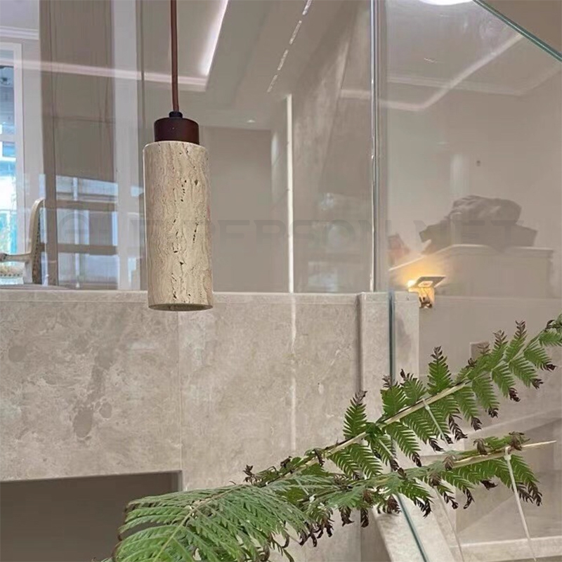 This modern pendant lamp features a solid natural stone body paired with a wooden top cap, presenting a refined blend of organic texture and contemporary design. Each stone cylinder is naturally formed, giving every lamp a unique grain and color variation, making it a true statement piece for interior decor.