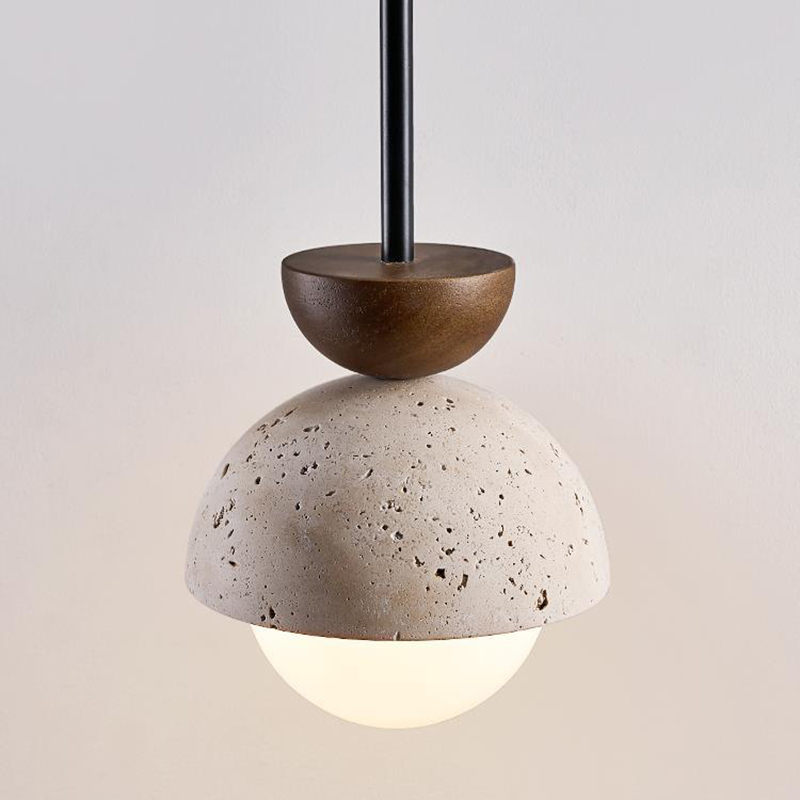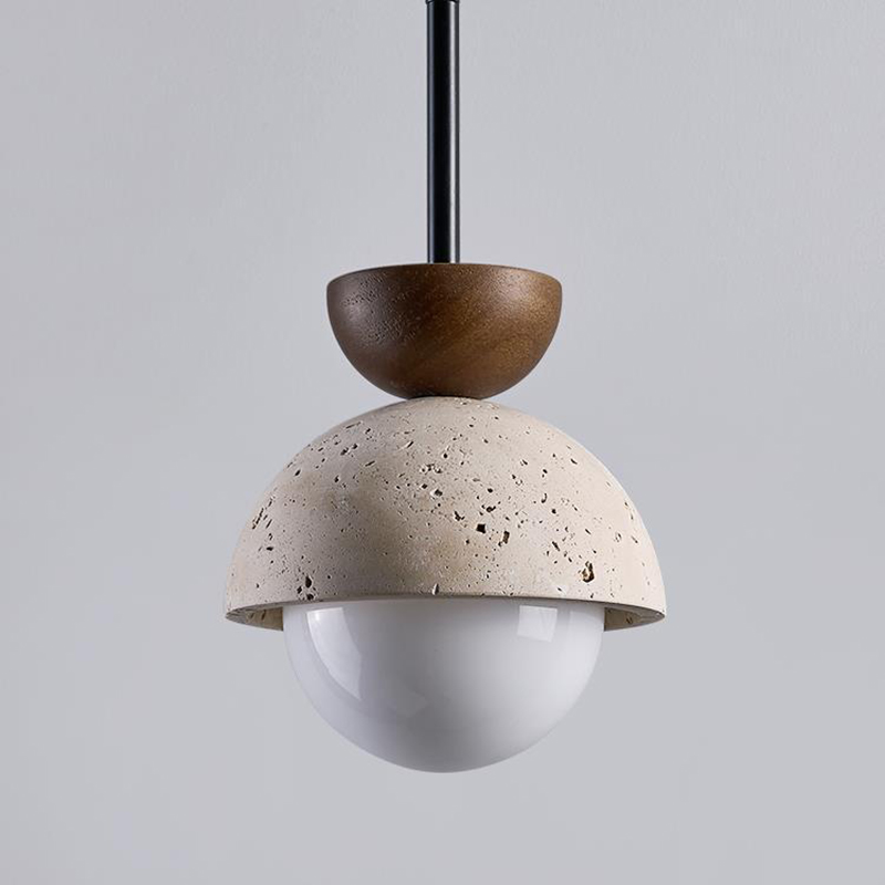 This pendant light combines natural wood, and a frosted glass globe lampshade, The shade adds a handcrafted, rustic touch, while the wooden accent brings warmth to the design.