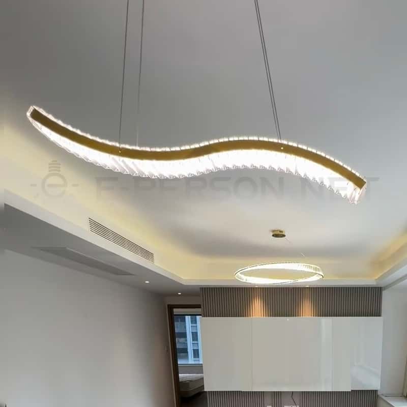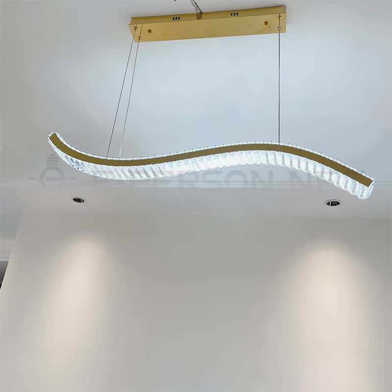 - EPPL9080 Modern Luxury Curved Crystal LED Pendant Light, Gold Wave Shape Chandelier for Dining Room …