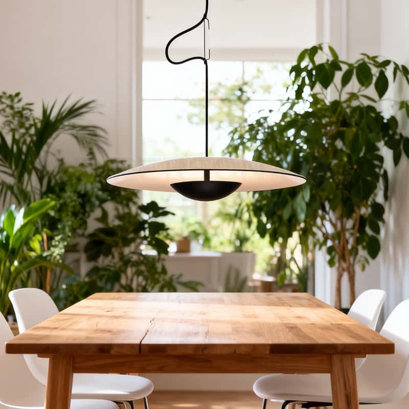 This modern pendant light is crafted from high-quality iron in an ultra-thin disc shape, creating a sleek and futuristic look. The wide surface design ensures soft and uniform illumination, while the iron frame adds durability and modern elegance. Perfect for living rooms, dining rooms, offices, or hotel lobbies, this pendant lamp blends minimalist style with practical LED lighting. Its clean lines and contemporary design make it an ideal choice for both residential and commercial interiors.