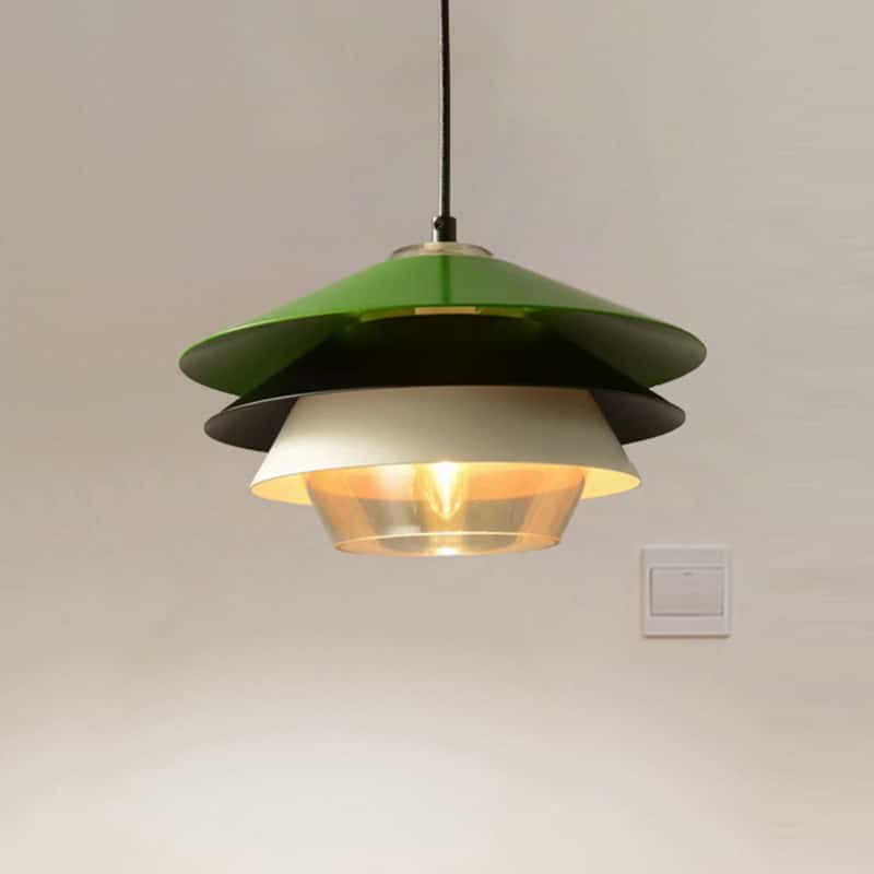 This Nordic layered glass pendant light combines metal and glass in a multi-tiered design, creating a harmonious balance between retro aesthetics and modern simplicity. The outer metallic layers add visual depth, while the inner frosted and clear glass softly diffuses the light. Ideal for dining areas, cafes, and living spaces, this pendant delivers both functionality and style, serving as a statement piece in any contemporary interior.