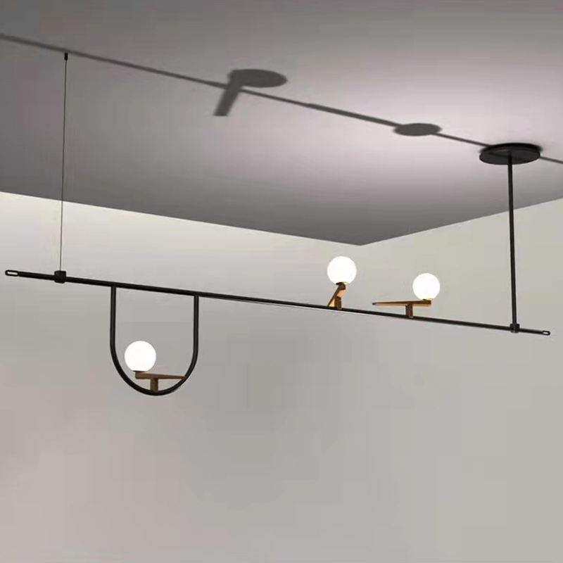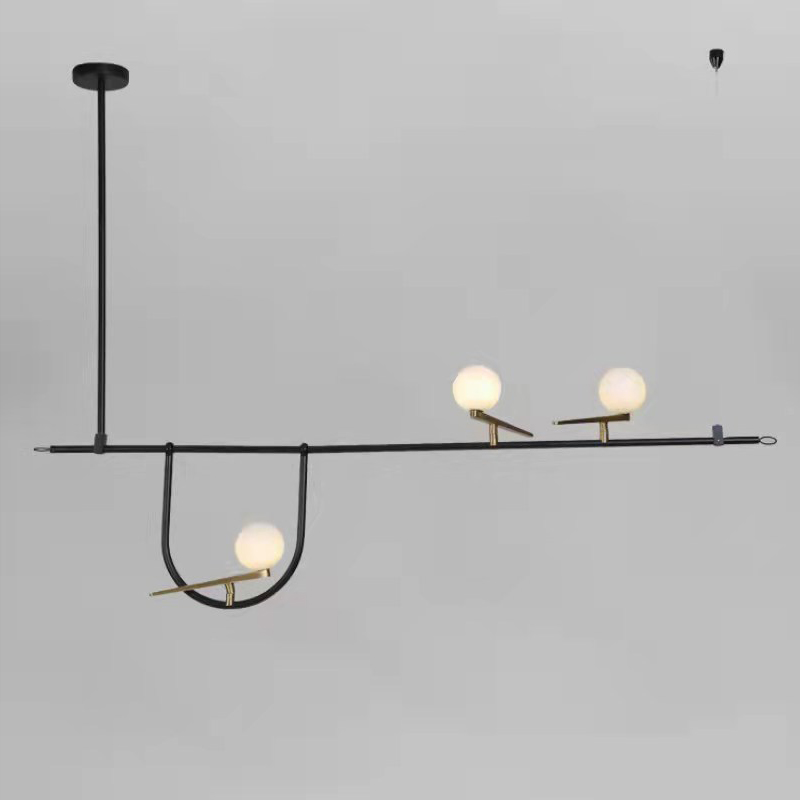This modern linear chandelier combines sleek iron craftsmanship with opal glass spheres to create a balanced, architectural silhouette. The contrast of black metal and warm golden details delivers both visual harmony and sophistication. Perfect for dining areas, kitchen islands, and living spaces, this design offers refined illumination with a sculptural aesthetic. Equipped with high-efficiency LED lighting, it merges elegance and functionality seamlessly.
