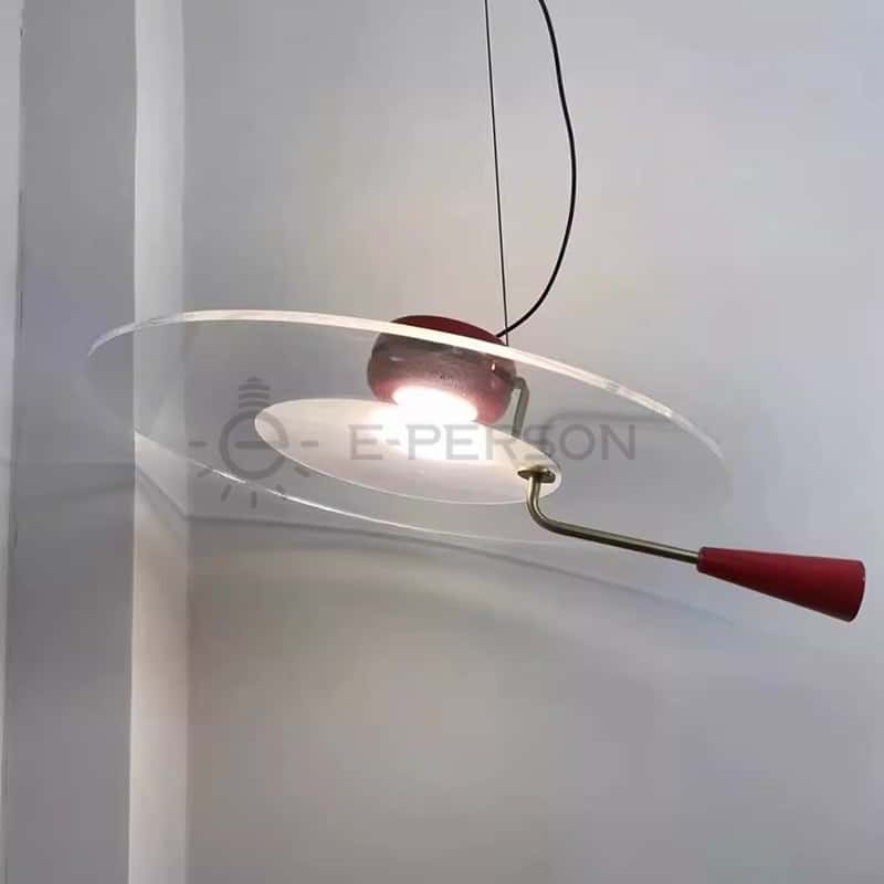 This modern pendant light combines acrylic, aluminum, and iron to create a futuristic floating disc designThe wide acrylic diffuser softens the LED light for a comfortable and even glow, while the metal structure ensures durability and stability.- Suitable place : Interior House