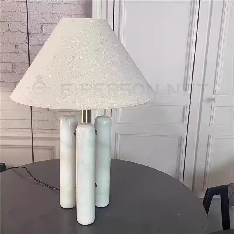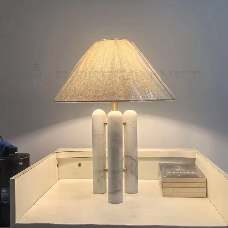 This luxury marble table lamp features a unique triple stone column base, combined with a classic fabric lampshade, creating a sophisticated and elegant lighting piece for premium interiors.- Suitable place : Interior House