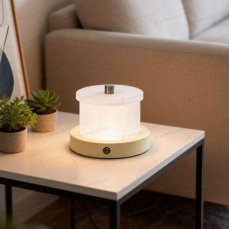 This modern ambient table lamp features a clean cylindrical design and a softly diffused warm glow, creating a calm and cozy atmosphere for interior spaces.