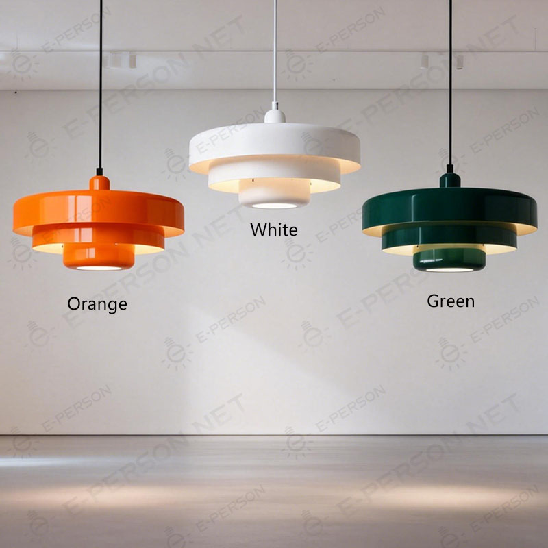 This retro industrial pendant lamp is crafted from durable iron with a bright orange finish, adding a bold pop of color and unique character to any space. Its layered circular design diffuses warm light, creating a cozy yet stylish atmosphere.- Suitable place : Interior House