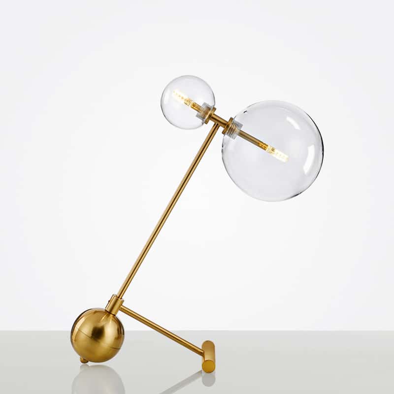 Elevate your interior design with this Modern Nordic Double Glass Globe Balance Table Lamp, an artistic masterpiece featuring two clear glass spheres gracefully balanced on a sleek gold metal frame. Inspired by molecular and planetary aesthetics, this lamp combines art and function, serving as both a striking decor piece and a source of ambient light.- Suitable place : Interior House