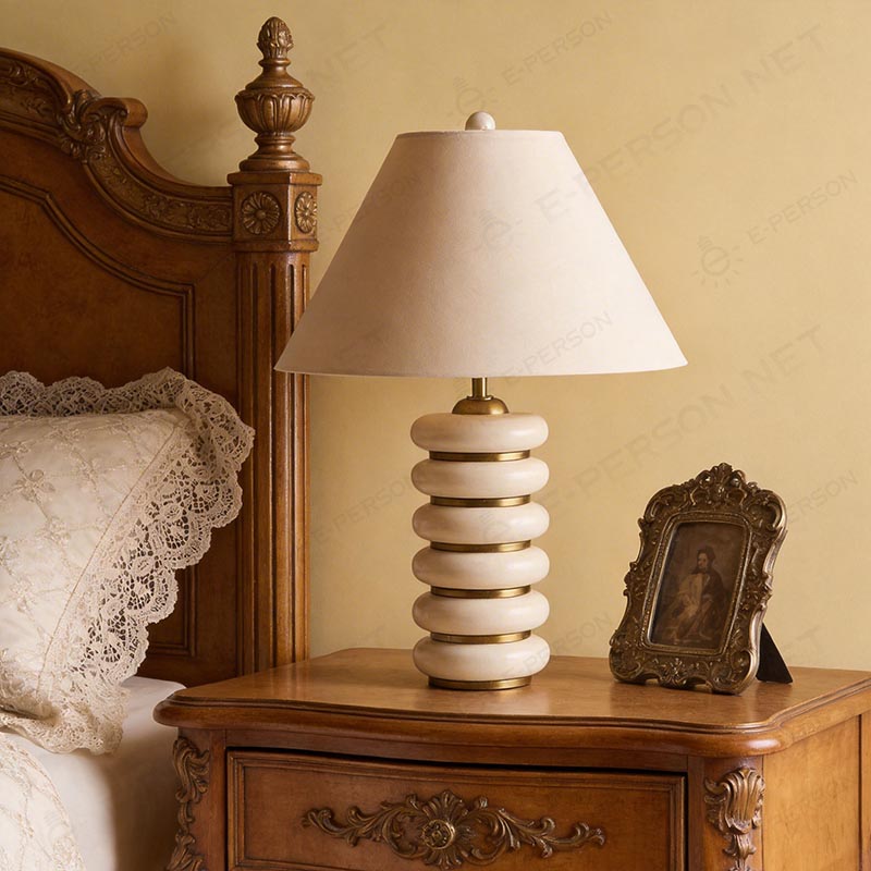 Cream Stone Table Lamp Stacked Design Modern Bedside Decorative Lighting