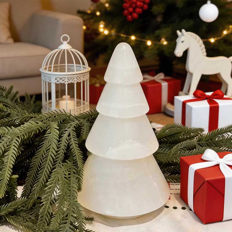 This elegant table lamp is crafted from natural marble stone, featuring a unique Christmas tree silhouette that showcases the beauty of natural textures and patterns. Each piece is one-of-a-kind due to the organic veining of the stone, offering a premium and artistic lighting solution.
