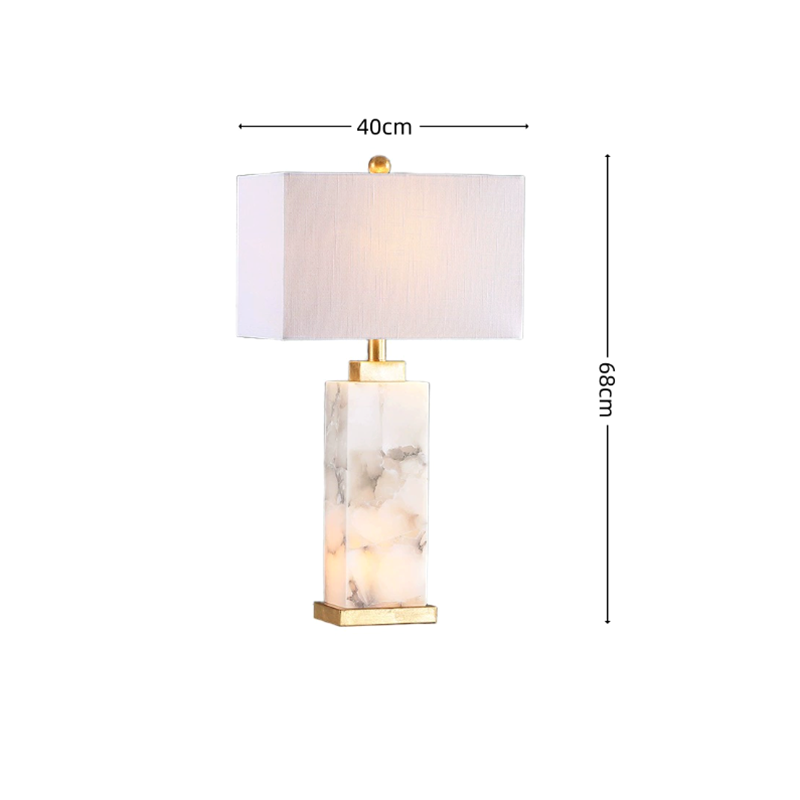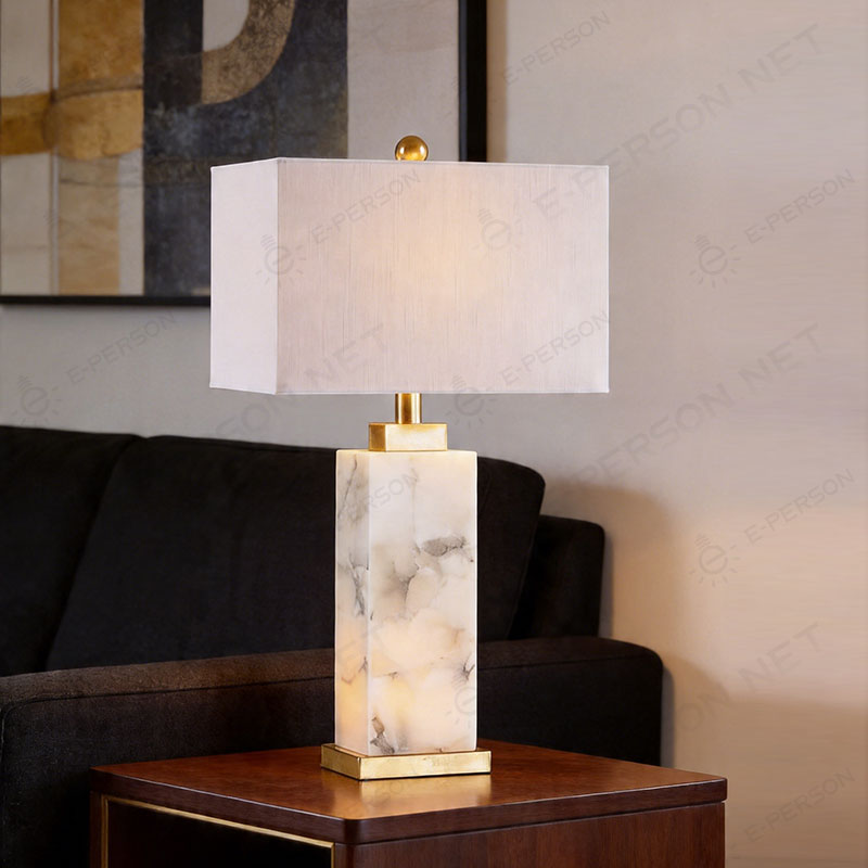 - EPTL0786Luxury Alabaster Table Lamp Square Base Brass Fabric Shade Bedside Lighting