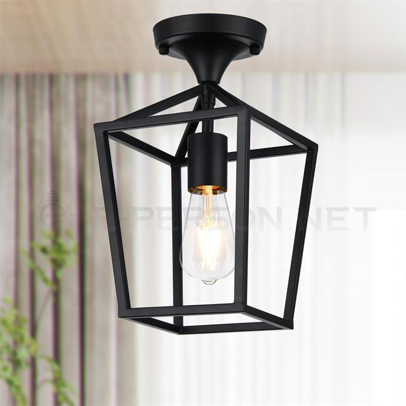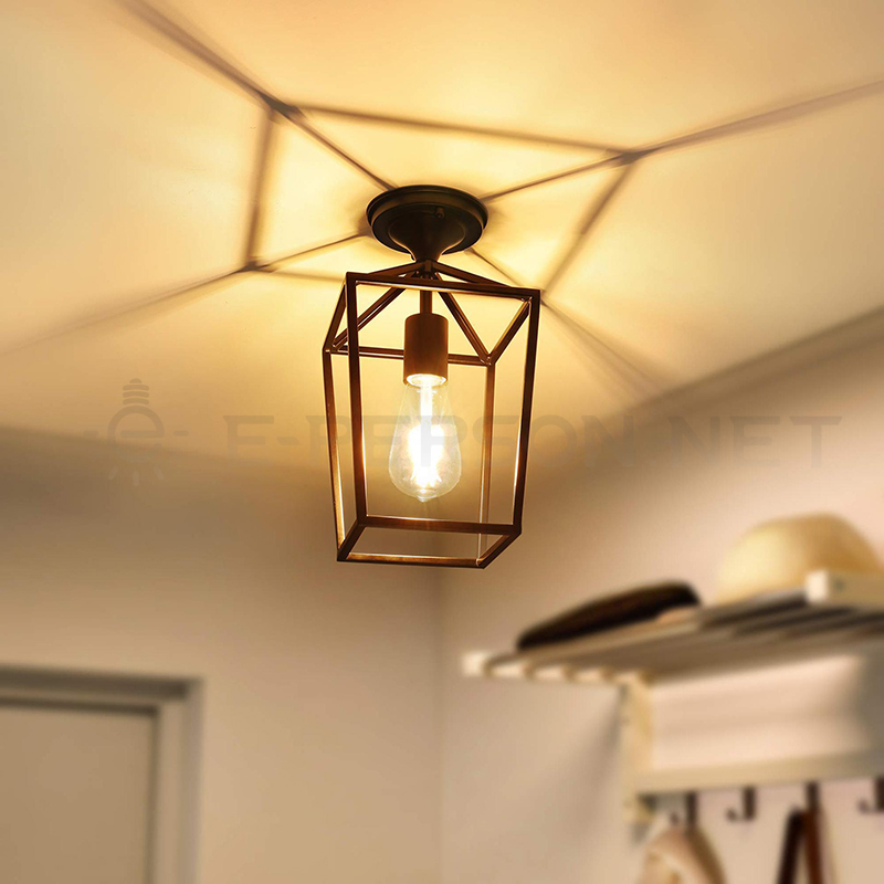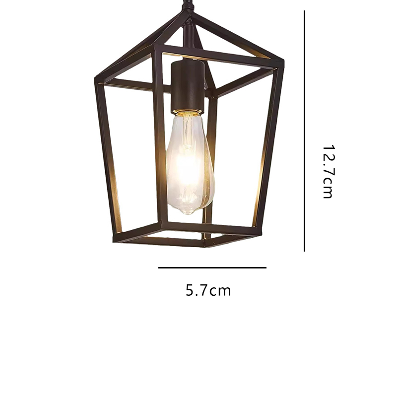 This industrial-style pendant light features a clean geometric iron cage design, offering a bold yet minimalist aesthetic suitable for modern homes and commercial interiors. The open-frame structure enhances brightness, allowing the warm glow of Edison-style bulbs to create an inviting atmosphere. Crafted from durable powder-coated metal, the lamp provides excellent rigidity and long-term stability. Perfect for kitchen islands, dining rooms, hallways, cafés, bars, and retail spaces, this hanging light blends industrial, minimalist, and contemporary design elements. Compatible with E26/E27 bulbs and easy to install with adjustable chain length.