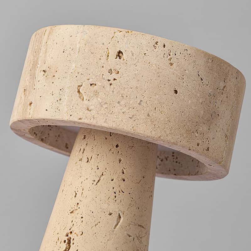 This minimalist table lamp is crafted from natural travertine stone, showcasing a refined sculptural form that combines architecture and nature.