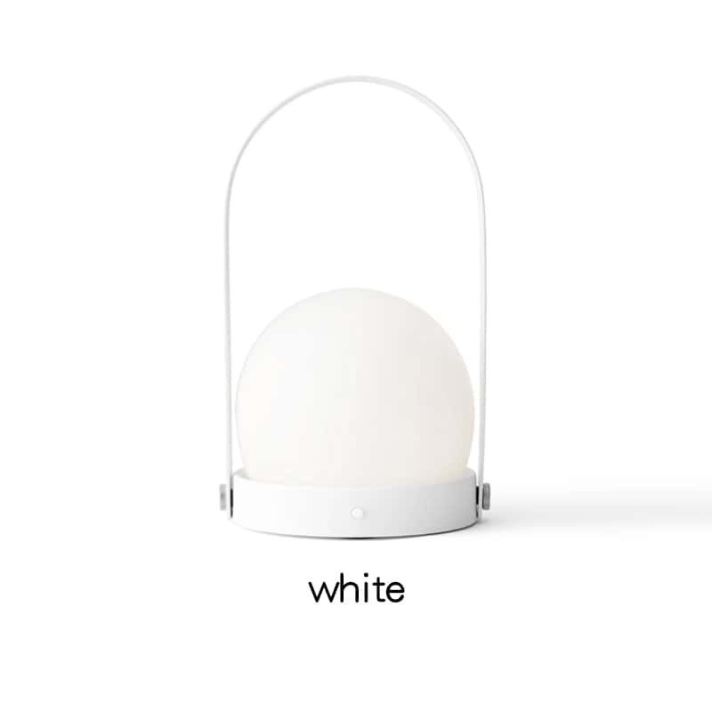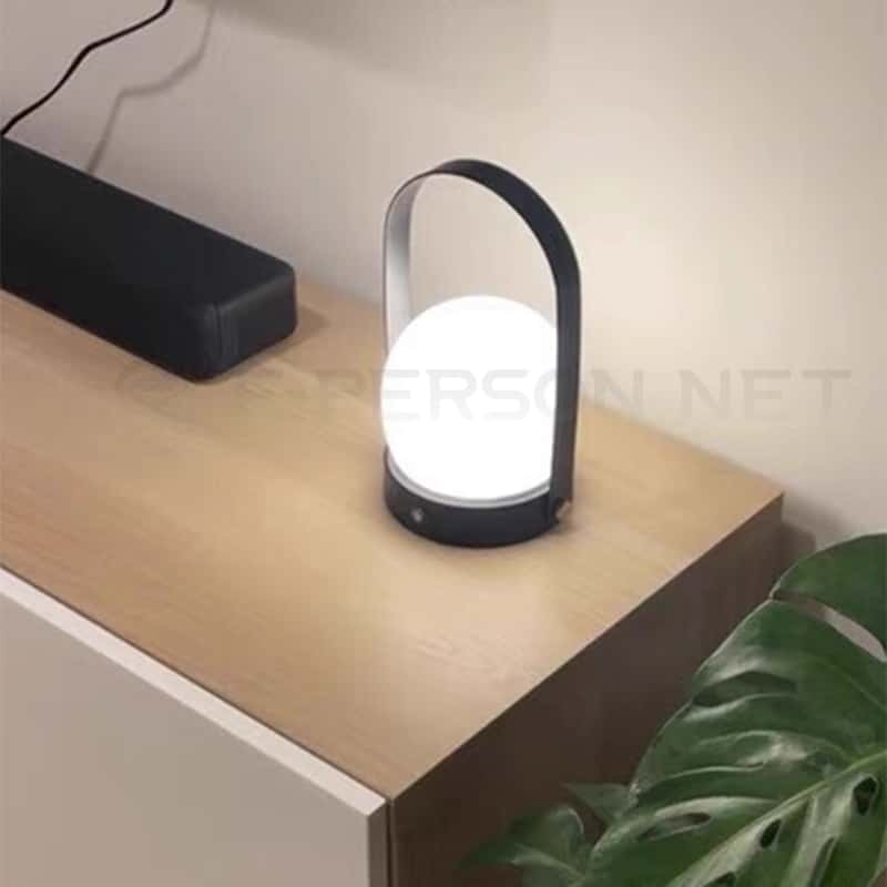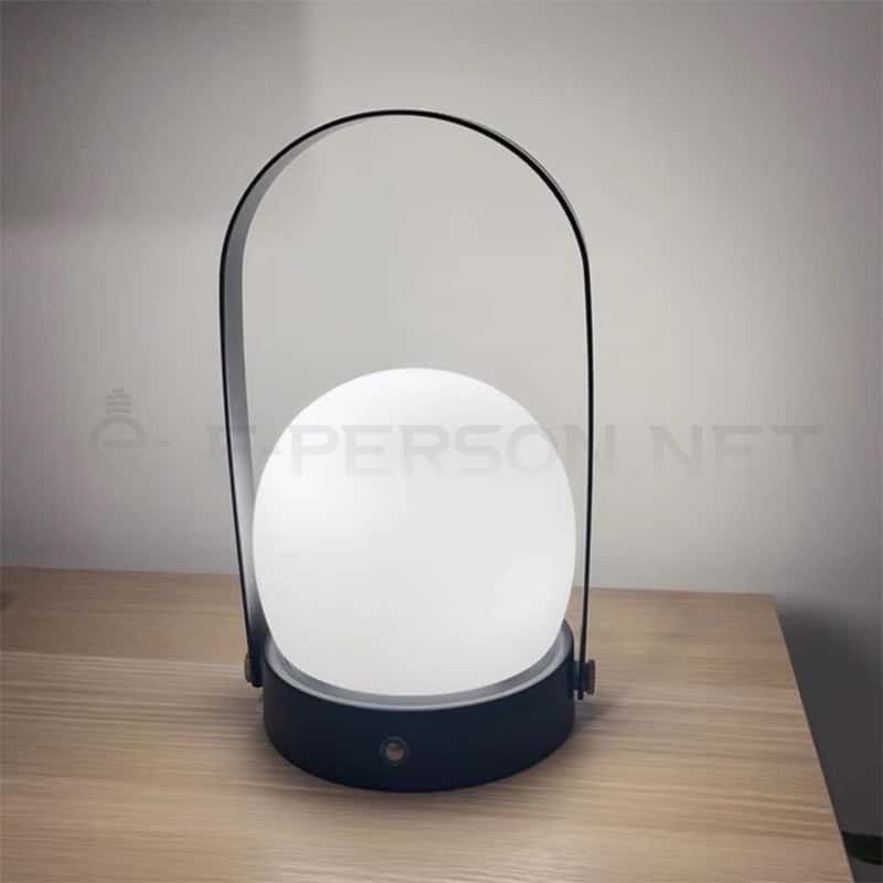 This modern portable lantern table lamp features a minimalist metal frame combined with a smooth dome-shaped light diffuser. Available in three elegant colors — black, white, and gold — it blends effortlessly with various interior and outdoor styles.