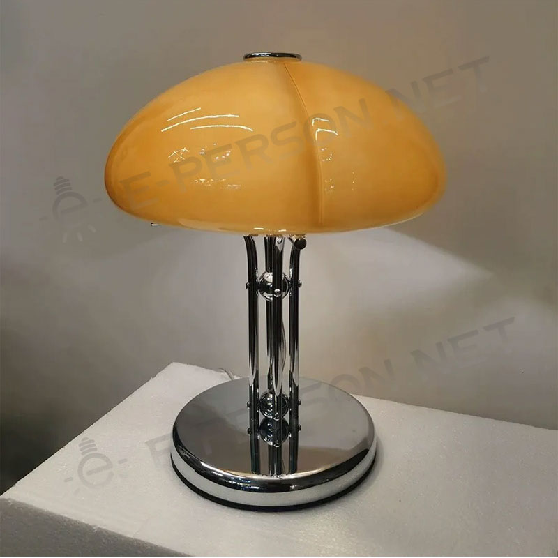 Add timeless elegance and a touch of retro flair to your space with this Retro Modern Mushroom Glass Table Lamp. Featuring a smooth, beige mushroom-shaped glass shade and a polished chrome metal stand with a split branch design, this lamp exudes mid-century modern charm with a contemporary twist.