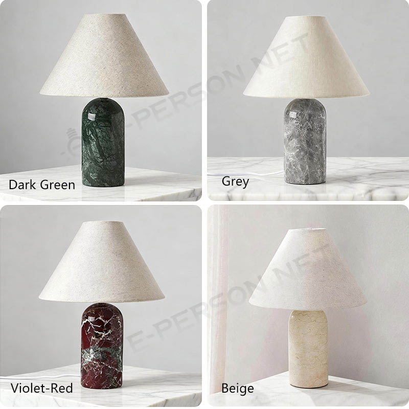 This modern table lamp features a stylish marble pattern base and a soft fabric lampshade, bringing a cozy and elegant touch to your bedroom or living space.