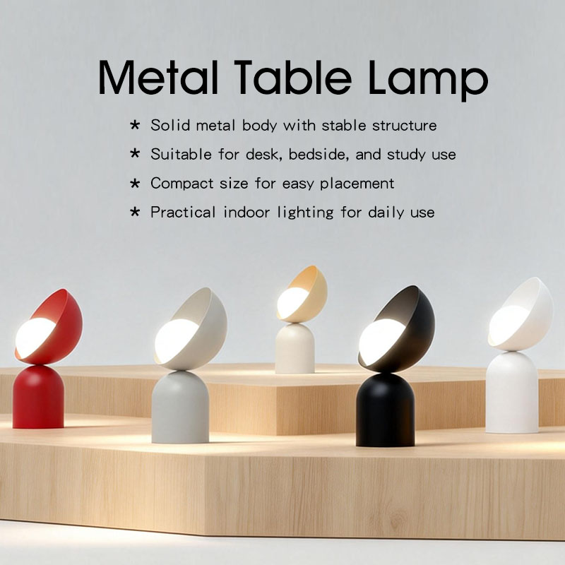 This modern table lamp features a simple geometric metal design with an adjustable lamp head, allowing flexible lighting direction for daily use.
