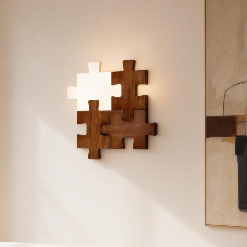 Creative Wooden Wall Lamp Puzzle Shape Modern Decorative Wall Light for Living Room Bedroom Home Decor