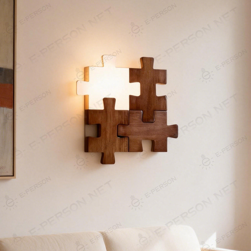 This creative wooden wall lamp features a unique puzzle-inspired design that combines decorative art with functional lighting. The layered wood structure creates soft indirect illumination, producing a warm and inviting atmosphere while serving as a statement wall decor piece.Designed for living rooms, bedrooms, corridors, and modern interior spaces, this wall light adds character and artistic style to any wall. The natural wood finish blends easily with modern, Scandinavian, and contemporary home decor.