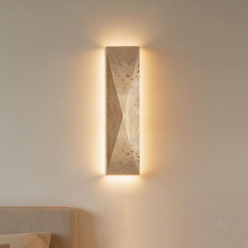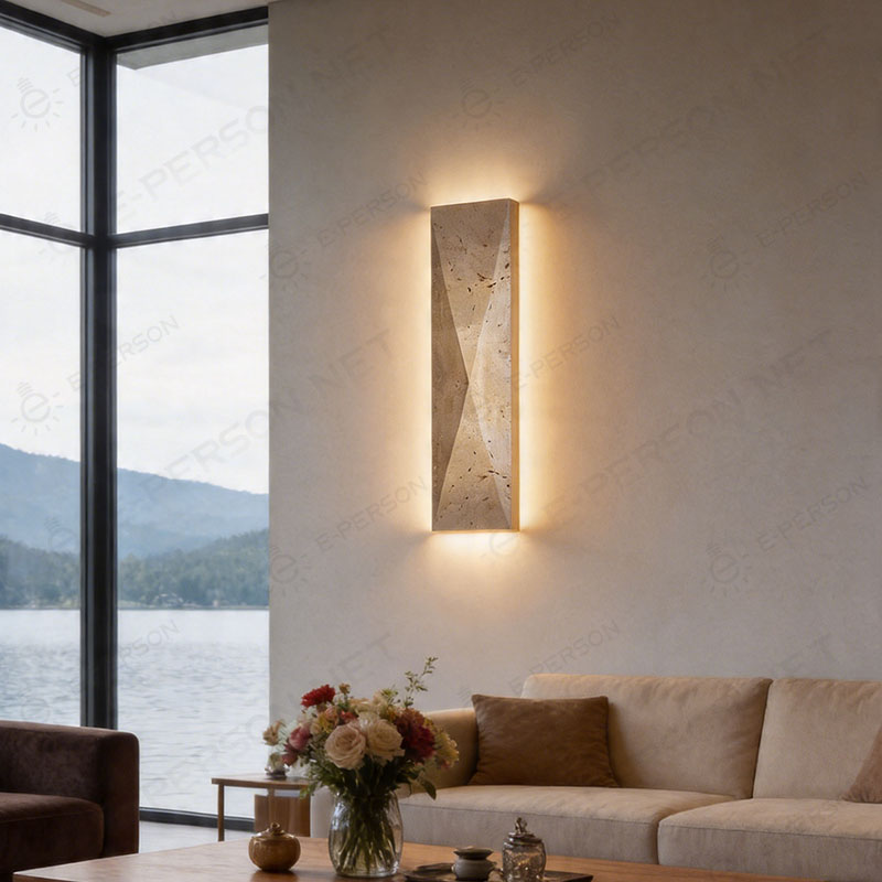 This wall lamp is crafted from natural stone with a geometric faceted design, creating a unique interplay of light and shadow. The textured surface enhances the natural beauty of the material, while the soft LED illumination delivers a warm and elegant atmosphere. Perfect for bedrooms, corridors, hotels, and villas, it combines modern minimalism with luxurious natural aesthetics.