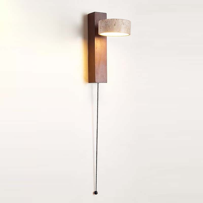 This Nordic-inspired wall lamp combines a natural solid wood base with a textured lamp head, creating a beautifully balanced minimalist design. The adjustable head allows you to direct light where needed, making it ideal for reading corners, bedside lighting, or accent illumination. A convenient pull chain switch adds ease of use and practical functionality.