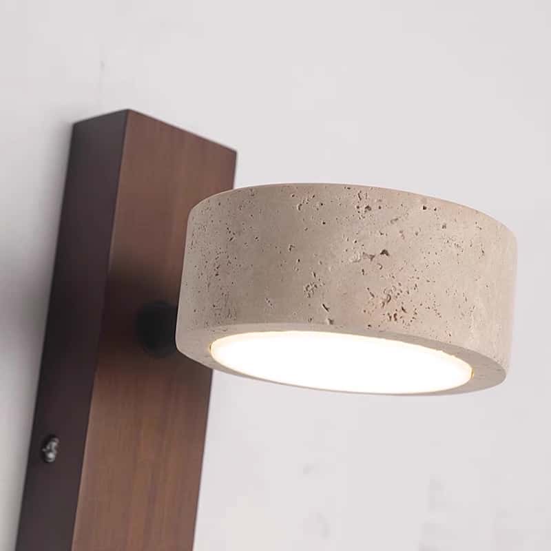 Wabi Sabi Travertine LED Bedside Wall Lamp Postmodern Yellow Stone Decor Sconce Rotatable 3000K Warm Light Beige Bedroom