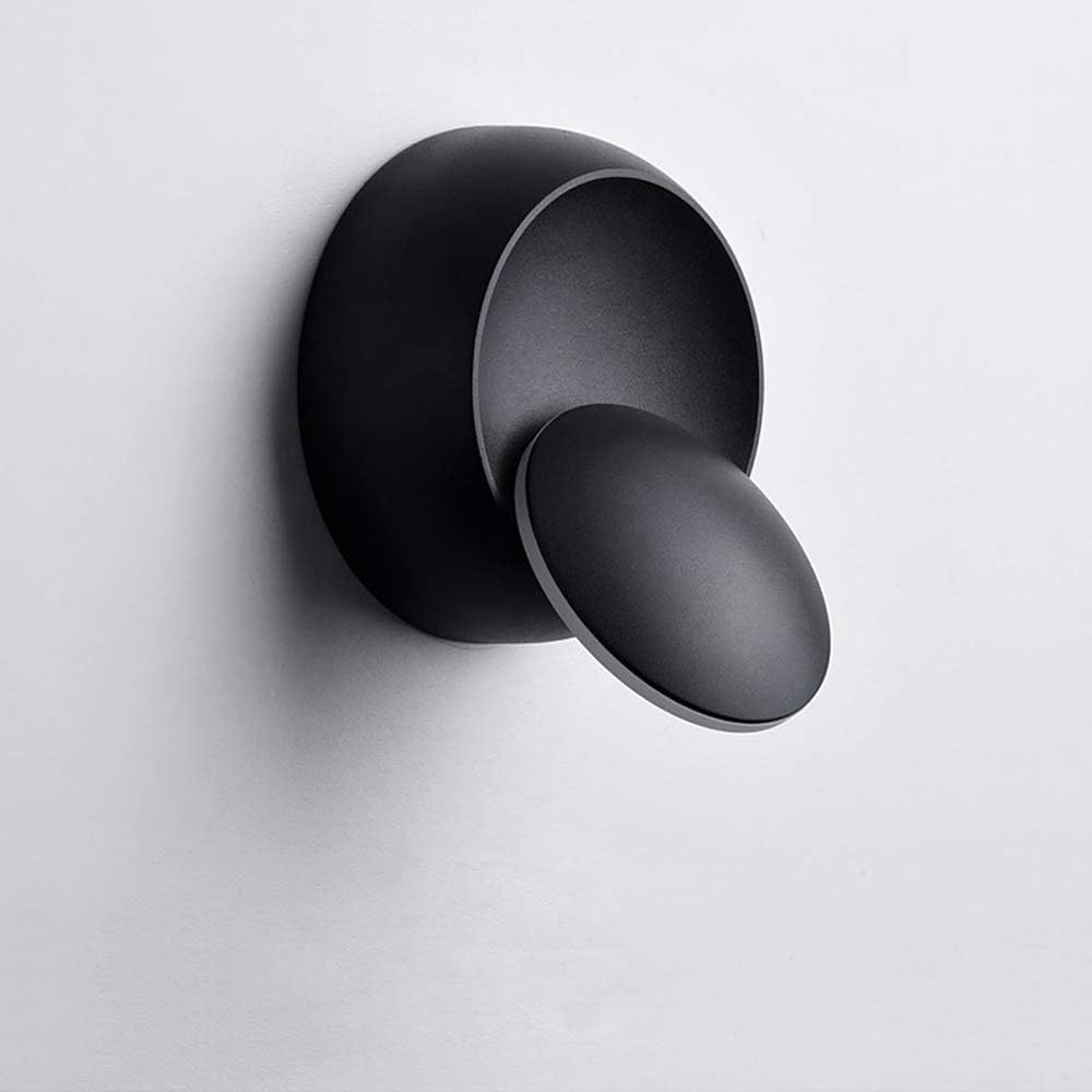 This modern LED wall lamp features a unique rotatable disc design, allowing the front light plate to be freely adjusted for directional lighting. With a sculptural round silhouette in matte black, it blends minimalist aesthetics with practical functionality, making it ideal for a variety of interior applications.