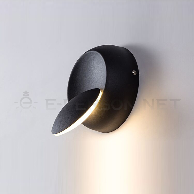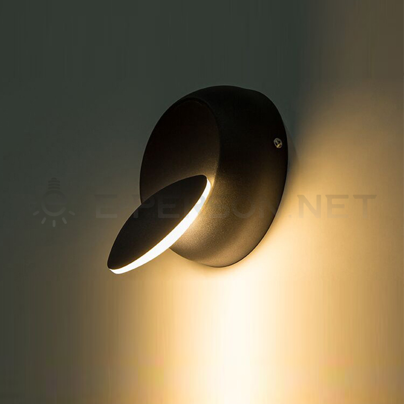 This modern LED wall lamp features a unique rotatable disc design, allowing the front light plate to be freely adjusted for directional lighting.