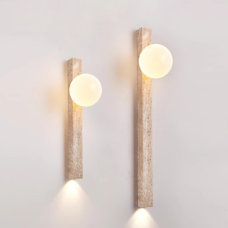 EPWL9092 Ultra Tall Minimalist Wall Lamp | Wabi-Sabi Vertical E14 Globe Light on Sculptural Stone Column | Zen Decorative Sconce