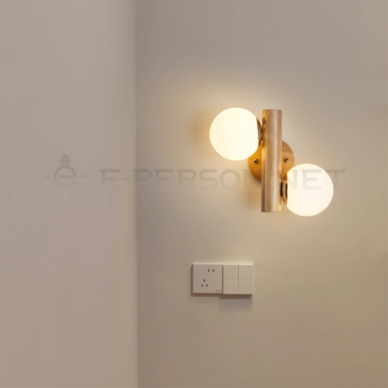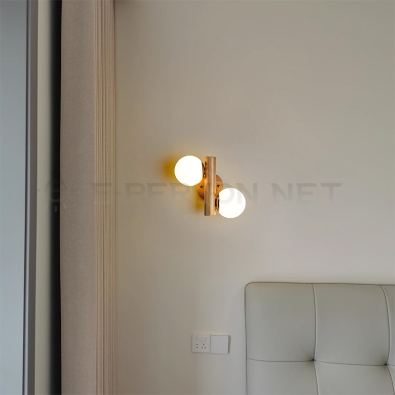 This Nordic solid wood wall lamp features a refined vertical wooden structure combined with two opal glass globe shades, creating a balanced and sculptural lighting design.The dual light sources emit soft, even illumination from both sides, enhancing the ambient atmosphere while adding strong decorative appeal.- Suitable place : Interior House