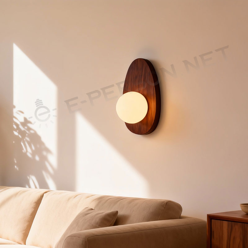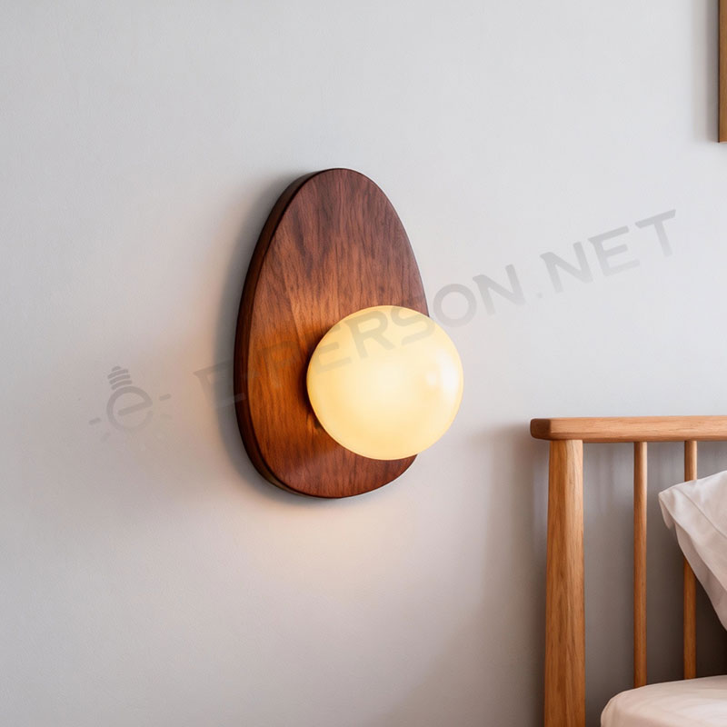 This Nordic wooden wall lamp features a clean oval solid wood backplate paired with a soft opal glass globe, delivering warm and comfortable ambient lighting.The flush mount design allows concealed wiring installation, creating a neat and minimalist wall appearance ideal for modern interiors.