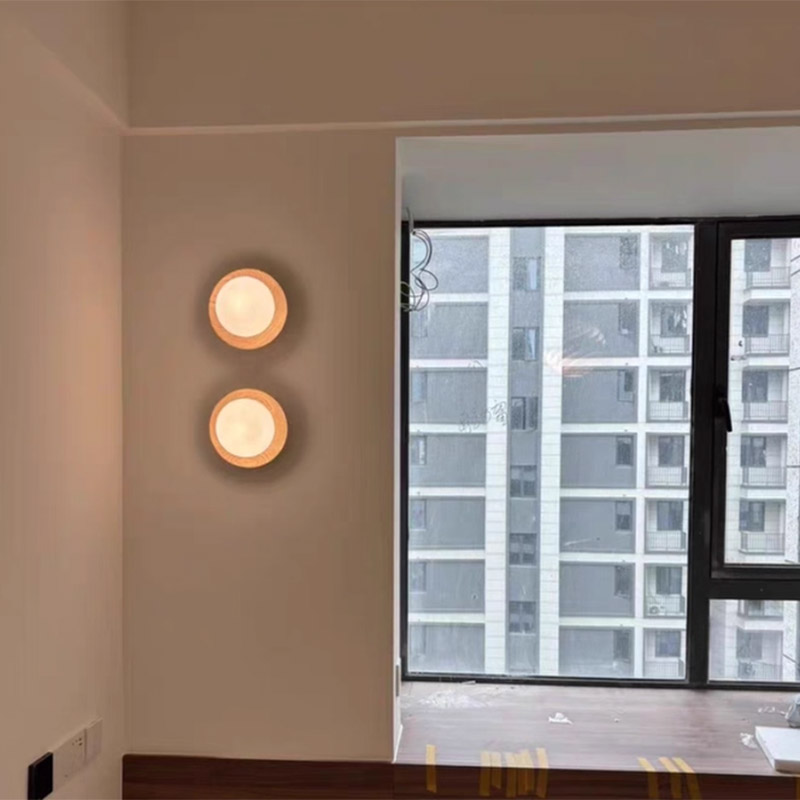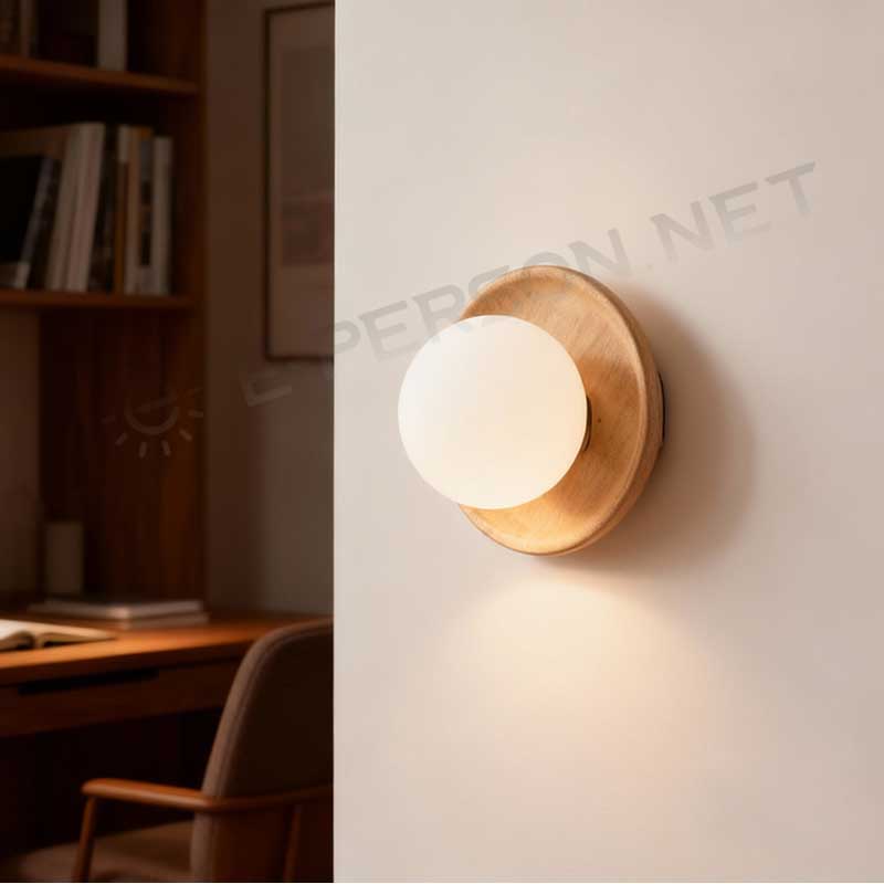This Nordic wooden wall lamp features a clean circular solid wood backplate combined with an opal glass globe, creating a soft and timeless minimalist design.The natural wood texture adds warmth, while the glass globe diffuses light evenly to provide comfortable, glare-free illumination.