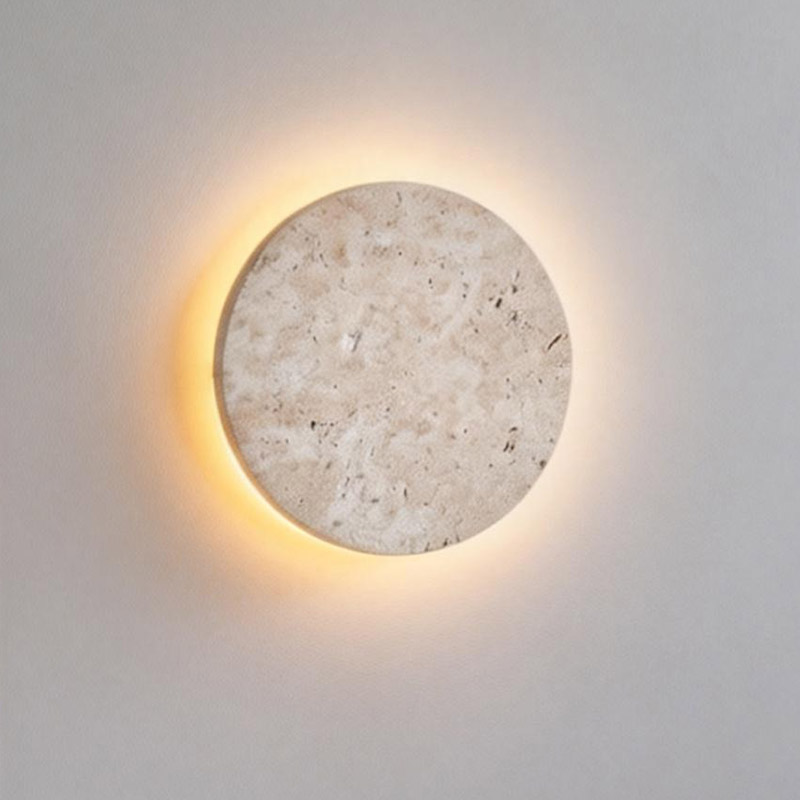 Natural Travertine Stone Wall Light Round Decorative Indoor Lamp for Bedroom Living Room Ambient Lighting