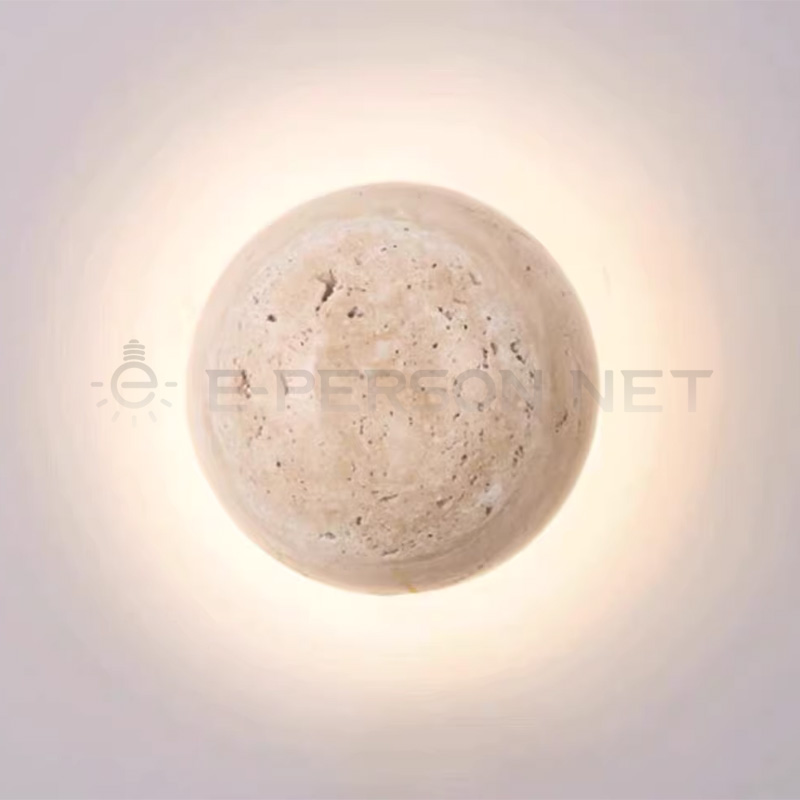 EPWL9255Natural Travertine Stone Wall Light Round Backlit Decorative Indoor Lamp for Bedroom Living Room Ambient Lighting